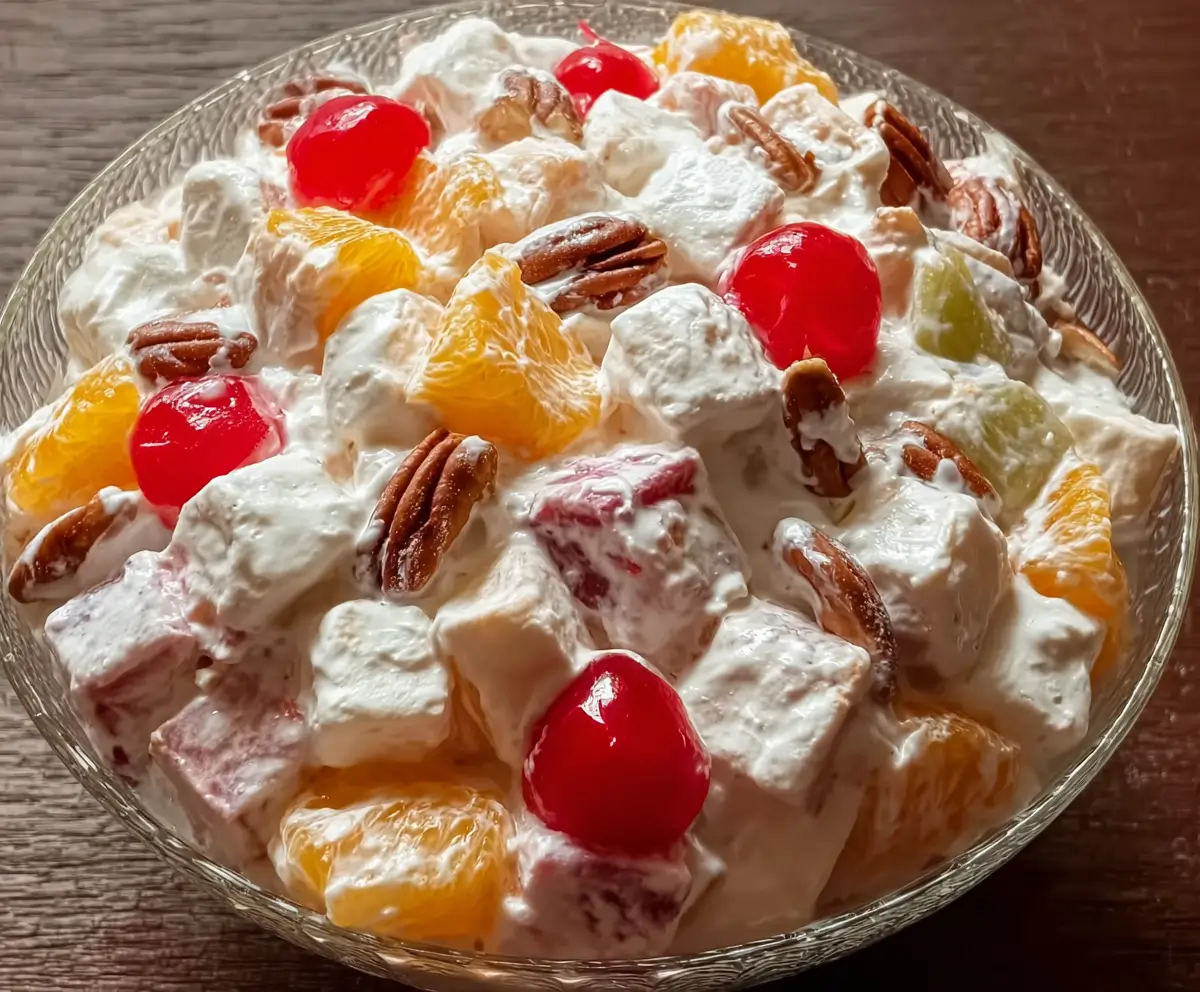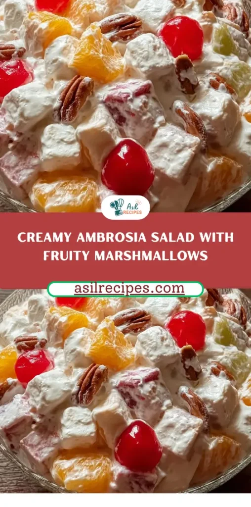 Ambrosia Salad Fruity Marshmallow is more than just a salad—it’s a symbol of festive gatherings, simple comfort, and a refreshing indulgence. Its combination of creamy texture, colorful fruits, crunchy nuts, and sweet marshmallows makes it a dish that pleases both the eyes and the palate.
