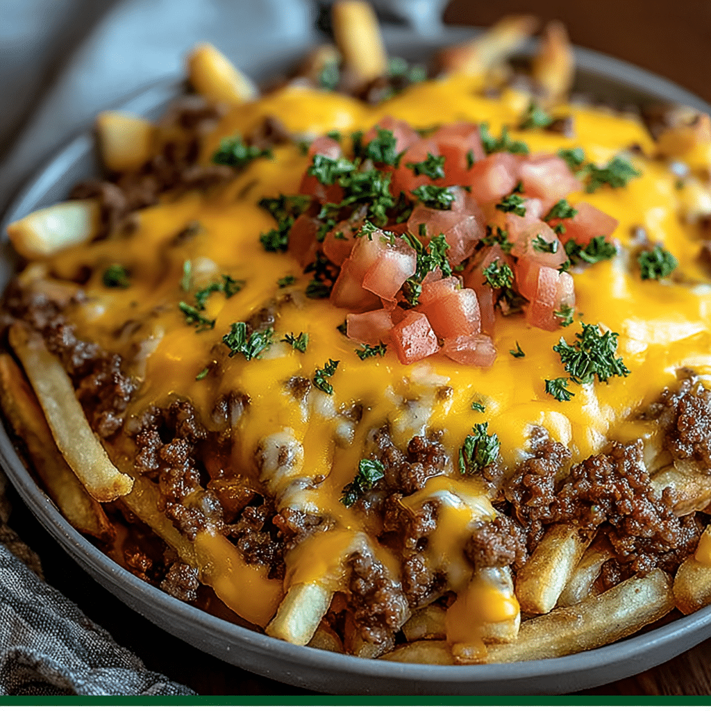 This layering allows the fries to crisp while absorbing flavor from the beef.