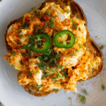 - Assemble: Toast bread, spread avocado, top with crispy egg salad, and add jalapeño slices if desired. Serve warm immediately.