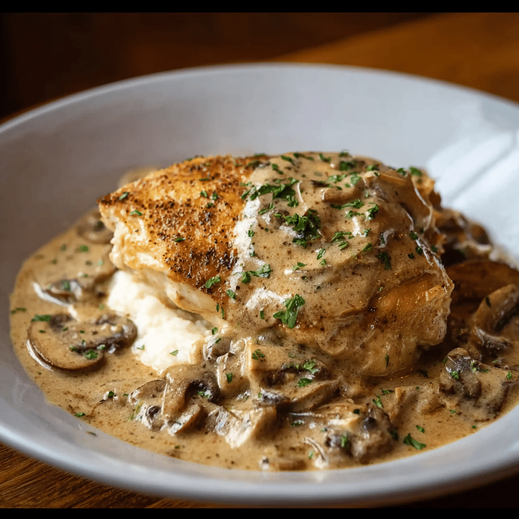 Ladle the creamy chicken and gravy over mashed potatoes, rice, egg noodles, or even toast. Garnish with a sprinkle of chopped fresh parsley for color and a hint of freshness. Serve immediately.
