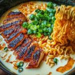 Fiery Chicken Ramen with Creamy Garlic Sauce is a perfect blend of spice, creaminess, and deep savory flavor. It transforms simple ingredients like chicken, noodles, garlic, and broth into a restaurant-style dish that feels both comforting and exciting.