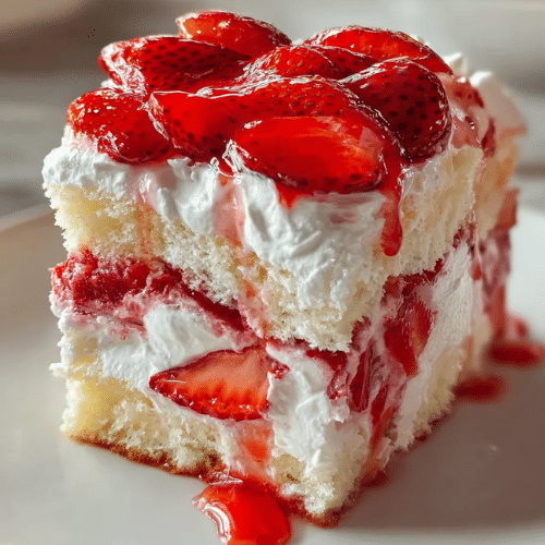 Heaven on Earth Cake is a delightful, creamy, and fruity dessert that impresses with every bite. Its combination of airy angel food cake, smooth cream cheese pudding, and sweet strawberry filling creates a multi-textured experience that is both indulgent and refreshing.