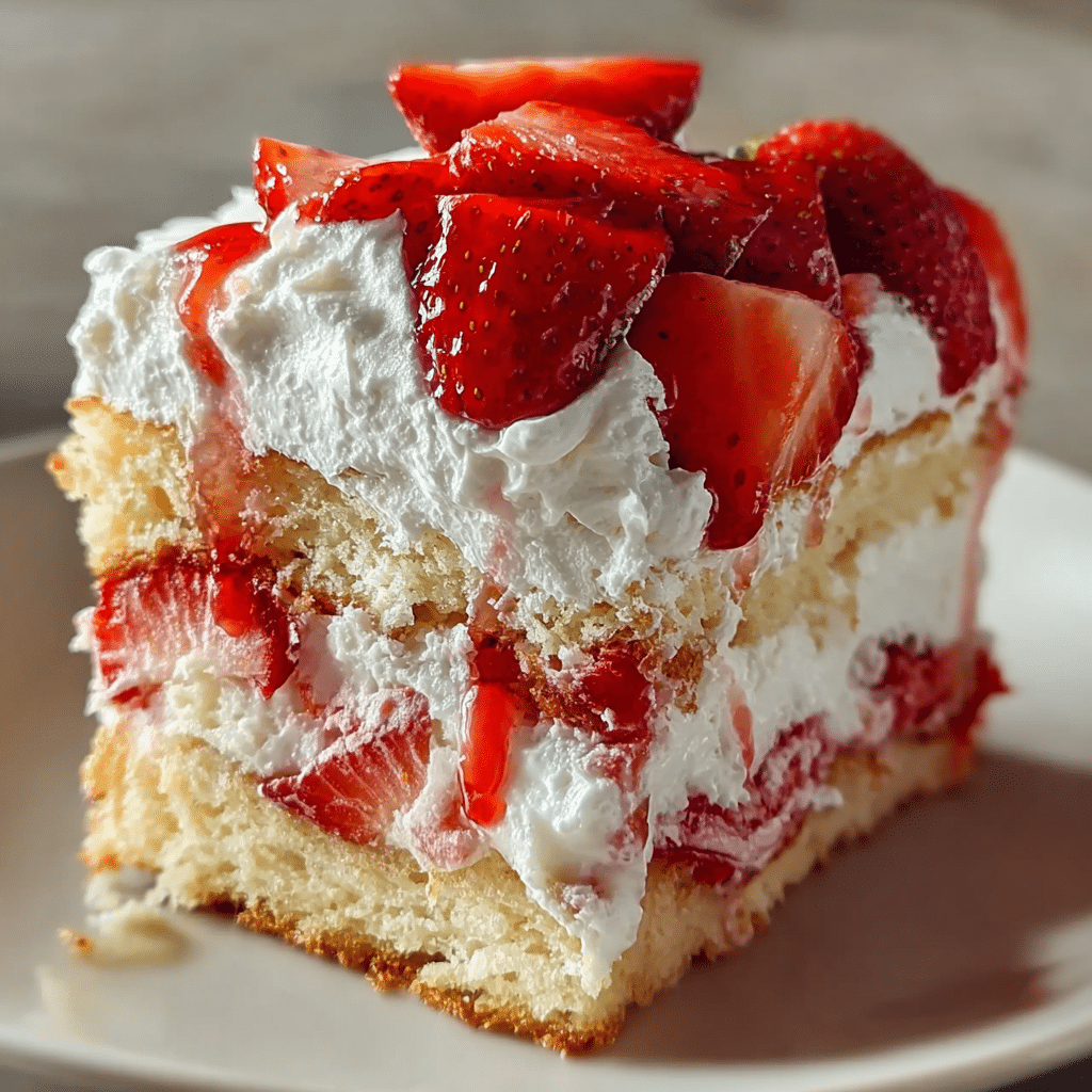 Heaven on Earth Cake is a delightful, creamy, and fruity dessert that impresses with every bite. Its combination of airy angel food cake, smooth cream cheese pudding, and sweet strawberry filling creates a multi-textured experience that is both indulgent and refreshing.