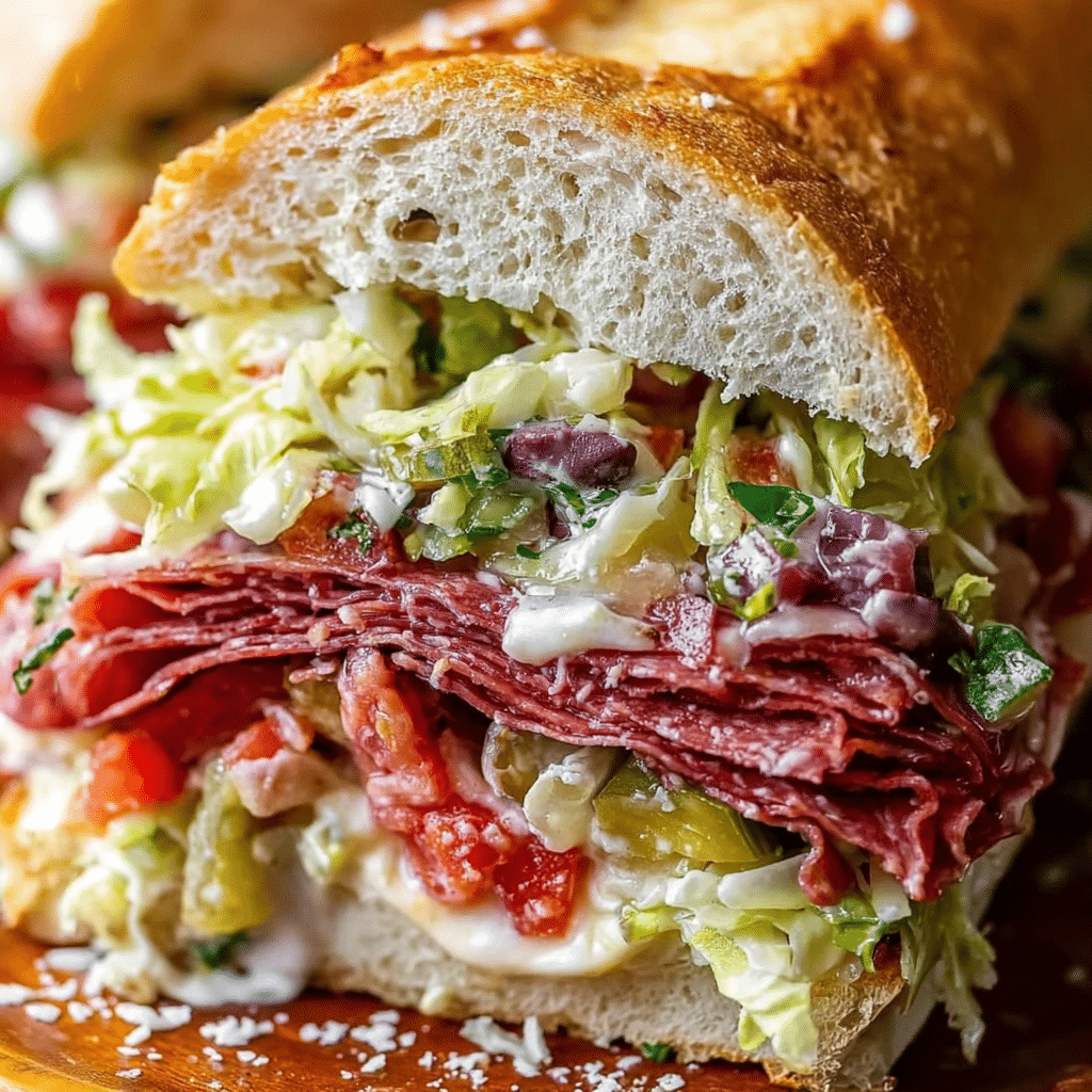 Indulge in the irresistible Italian Grinder Salad Sandwich, a TikTok viral sensation that combines savory Italian meats, creamy cheeses, and a zesty grinder salad—all packed into a delightful sub roll. Perfect for any occasion!