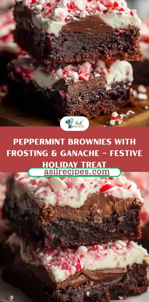 These Peppermint Brownies are a festive treat featuring rich chocolate brownies topped with peppermint frosting and chocolate ganache — perfect for holiday celebrations.