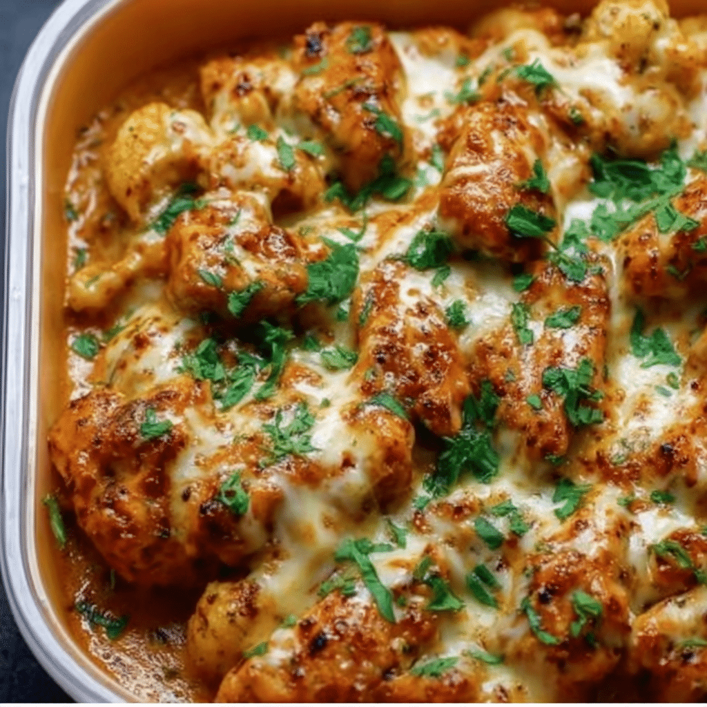 Tender chicken coated in a silky garlic-Parmesan sauce paired with golden, cheesy potatoes. High-protein, comforting, and perfect for healthy dinners.
