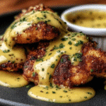 There are crispy chicken recipes, and then there is Pretzel Chicken with Mustard-Cheddar Sauce. This dish takes the familiar comfort of breaded baked chicken and elevates it to something extraordinary by swapping ordinary breadcrumbs for coarsely crushed pretzels. The result is a crust that is salty, golden, irresistibly crunchy, and deeply flavorful—far more interesting than any standard breaded chicken breast. Paired with a velvety, tangy mustard-cheddar sauce, this dish delivers bold, cheesy flavor in every single bite.