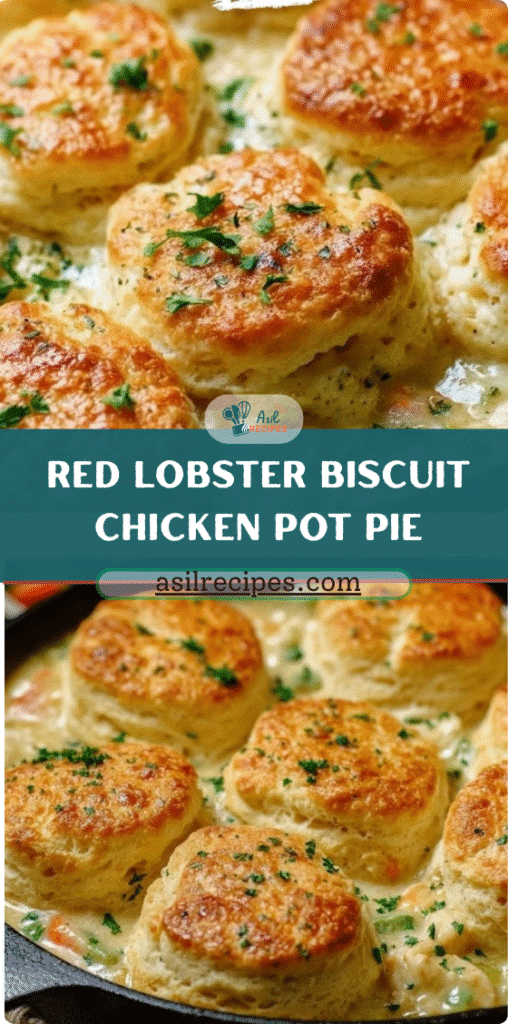 This comforting Red Lobster Biscuit Chicken Pot Pie combines tender chicken and mixed veggies in a creamy sauce, topped with warm, fluffy biscuits, perfect for a cozy dinner.