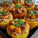 Teriyaki Pineapple Chicken and Rice Stuffed Peppers are a vibrant, flavor-packed dish that perfectly balances sweet, savory, and slightly tangy notes in every bite. This recipe combines tender shredded chicken, fluffy rice, juicy pineapple, and rich teriyaki sauce, all baked inside colorful bell peppers for a wholesome and visually appealing meal.