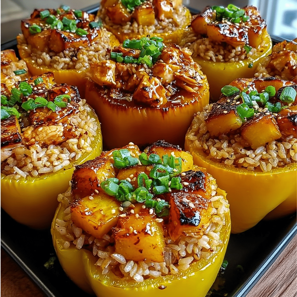 PrintTeriyaki Pineapple Chicken and Rice Stuffed Peppers: A Sweet and Savory Meal (Easy Oven-Baked Recipe)