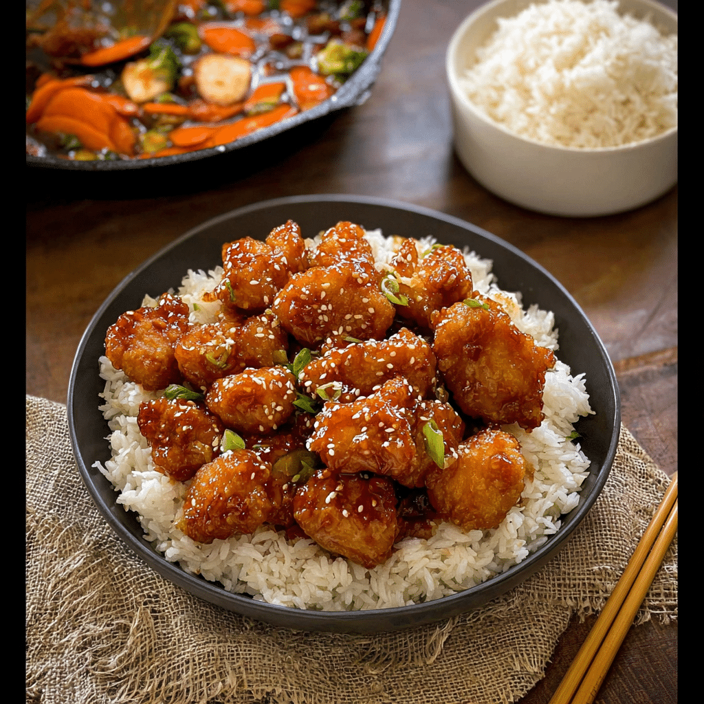 General Tso’s Chicken is a crispy, sweet, tangy, and slightly spicy Chinese-American dish made with fried chicken coated in a glossy chili-soy sauce.