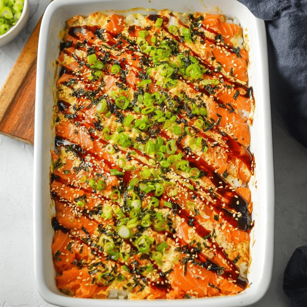 PrintViral Salmon Sushi Bake Recipe – Easy, Creamy, Cheesy Japanese-Inspired Casserole